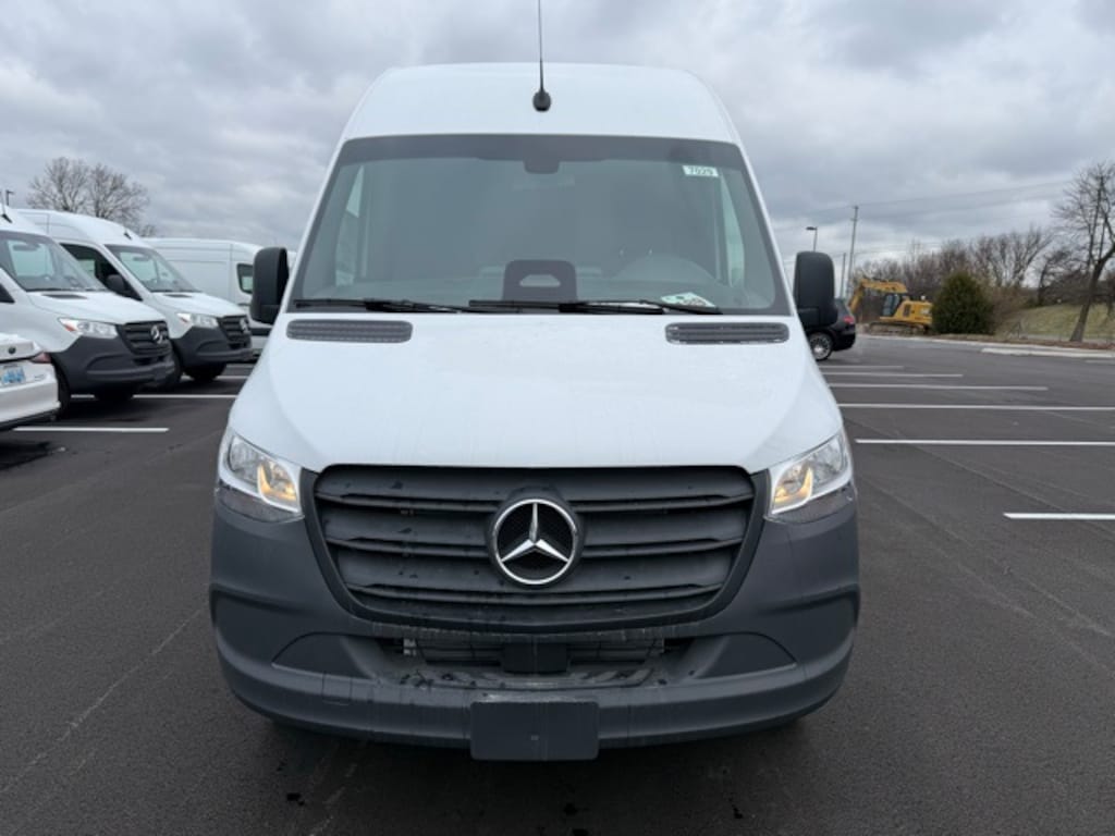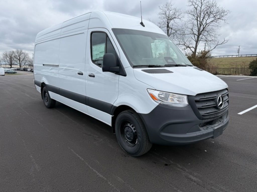 White 2025 Mercedes-Benz Sprinter 2500 Cargo 170 WB High Roof RWD 9-Speed Automatic 2.0L 4-Cylinder 2 Additional Master Keys, ATTENTION ASSIST®, B-Pillar Assist Handle, Blind Spot Assist, Brake assist, Diesel Misfueling Prevention, Driver Convenience Package, Driver Seat Base 12V Power Outlet, Electrically Folding Exterior Mirrors, Electronic Stability Control, Exterior Parking Camera Rear, Heated door mirrors, Hinged Lid for Left & Right Storage Compartments, Hinged Lid for Storage Compartment, Jet Black Painted Rims, Leatherette Upholstery, Left Rear Door Assist Handle, Maturin Fabric Upholstery, Opening to Side Wall Rear Doors, Power door mirrors, Rain sensing wipers, Rear Door Convenience Package, Rear Doors 90 Degree Fixation Point, Sideguard Assist, Speed control, Trailer Hitch, Trailer Hitch Rear Half-Sided Step, Wood Floor w/6 D-Rings.
