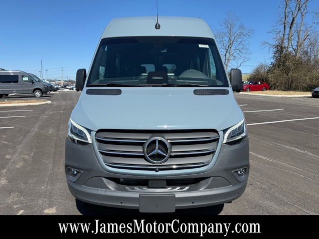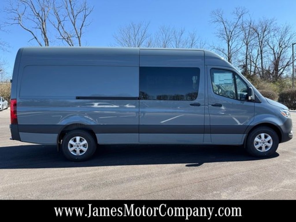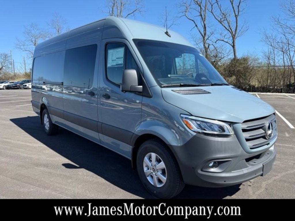 Blue Gray 2026 Mercedes-Benz Sprinter 2500 Crew 170 WB High Roof RWD 9-Speed Automatic 2.0L I4 Diesel Turbocharged High Output 115V Socket, 2 Additional Master Keys, 3-Button Remote Control, 3-Seater Comfort Bench Rear, 1st Row (Narrow), 4-Wheel Disc Brakes, 6.5J x 16" Light-Alloy Wheels, ABS brakes, Acoustic Package, Active Distance Assist DISTRONIC®, Active Lane Keeping Assist, Additional Battery Cutoff Relay, Air Conditioning, ATTENTION ASSIST®, Blind Spot Assist, Bodyside moldings, Brake assist, Charging Package, Dashboard, Chrome Grille Package, Chrome Plated Radiator Grille, Co-Driver Comfort Head Restraint, Co-Driver Seat Base Additional Battery, Co-Driver's Seat Lumbar Support, Comfort Driver's Seat, Comfort Overhead Control Panel, Comfort Package, Comfort Package with Seat Addition, Comfort Passenger's Seat, Convenience Head Restraints For Pass. Compartment, Crew Van Comfort Package, Digital Rearview Mirror, Drive Assist Package, Driver and Passenger Door Armrest, Driver Comfort Head Restraint, Driver Convenience Package, Driver door bin, Driver Seat Base 12V Power Outlet, Driver's Seat Lumbar Support, Dual front impact airbags, Dual front side impact airbags, Electric Sliding Door Right, Electrically Folding Exterior Mirrors, Electronic Stability Control, Exterior Lighting Package, Exterior Parking Camera Rear, Fog Lamps with Cornering Light Function, Front anti-roll bar, Fully automatic headlights, Half-Sided Step Rear For Trailer Hitch, Heated door mirrors, Heated Driver's Seat, Heated Front Passenger Seat, High Beam Assist, Hinged Lid For Left and Right Storage Compartments, Hinged Lid For Storage Compartment, Illuminated entry, Instrument Panel Front-to-Rear Outlet, Interior Rear View Mirror, Leather Steering Wheel, Leatherette Upholstery, LED High Performance Headlamps, MBUX Package, Misfueling Prevention For Diesel, Moving Off Information System, Navigation System, Outside temperature display, Overhead console, Parking Package, Parking Package with 360-Degree Camera, Partial LED Tail Lights, Power door mirrors, Power steering, Power windows, Pre-Installation For Navigation, Radiator Grille Frame in Vehicle Color, Radio: MBUX Multimedia System with 10.25" Touchscreen, Rain sensing wipers, Rear anti-roll bar, Rear Doors, Opening to Side Wall, Rear View Camera with Head Unit Display, Rear window defroster, Remote keyless entry, Sideguard Assist, Smartphone Integration Package, Steering wheel mounted audio controls, Suspension For Comfort & Load Protection, Tilt steering wheel, Traction control, Trailer Hitch, Tray For Smartphones, Variably intermittent wipers, Wet Wiper System, Wood Floor with 6 D-Rings.